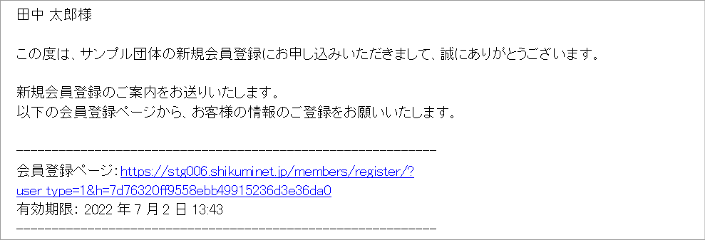 - 会員登録ページのURLは、有効期限を超過すると「失効」します。