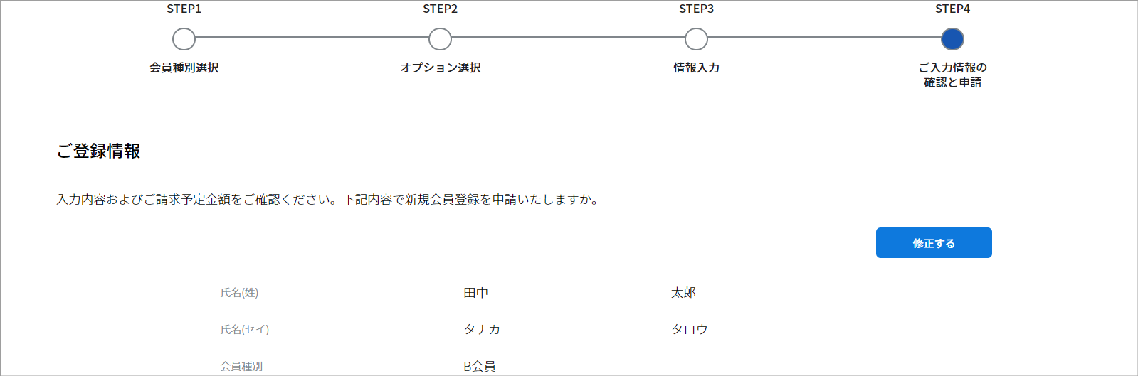 - 「ご請求予定金額」は、選択した会員種別・オプションが反映されます。