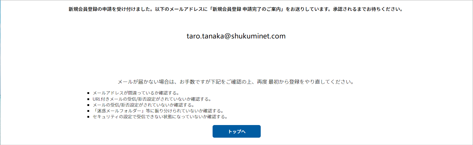 ⑥'次の画面が表示された場合は、入会(新規登録)時に管理者の「承認」が必要です。