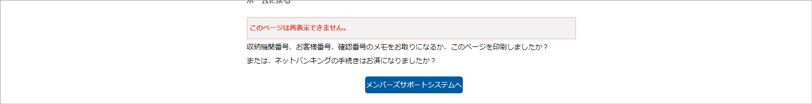 ⑥お支払い操作を完了する場合は、画面下部の「メンバーズサポートシステムへ」をクリックします。