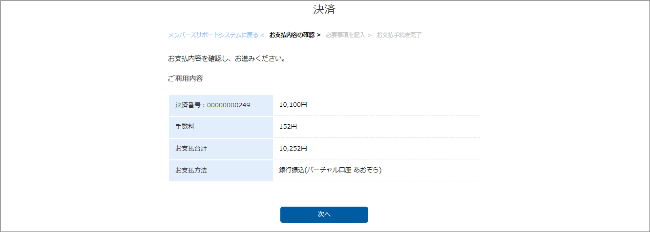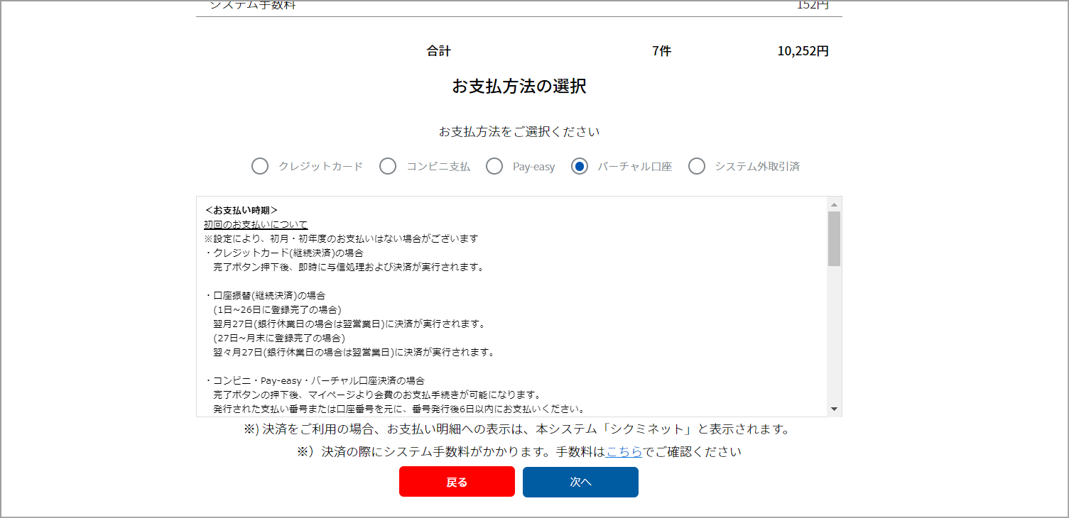 - 「次へ」をクリックすると、「バーチャル口座サイト」に遷移します。