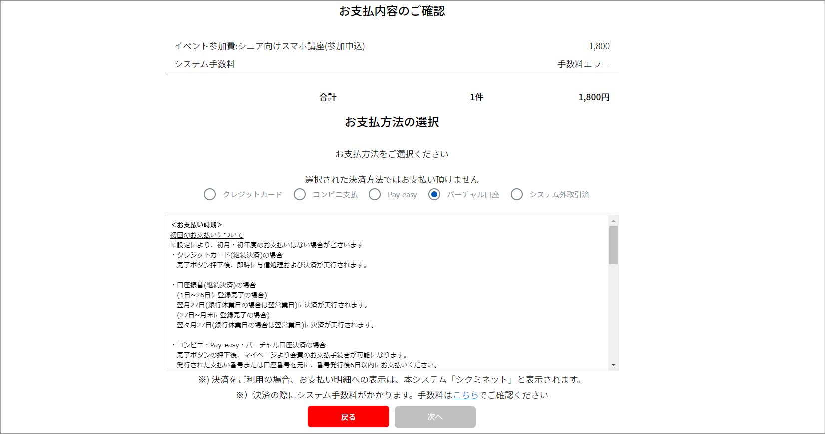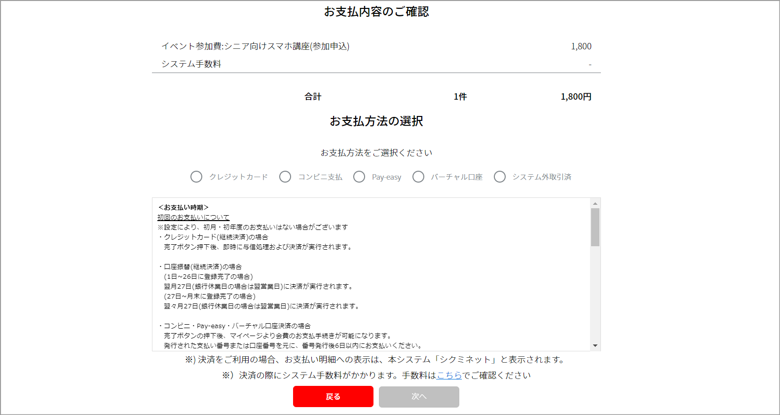 - 「次へ」をクリック後、お支払い方法は、手続きしたお支払期限が切れるまで変更できません。