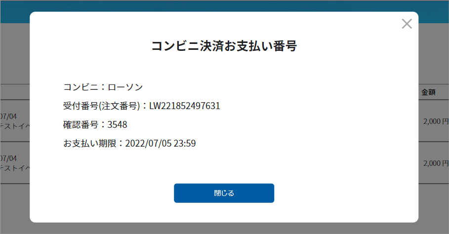 ③『コンビニ決済お支払い番号』画面が表示されます。
